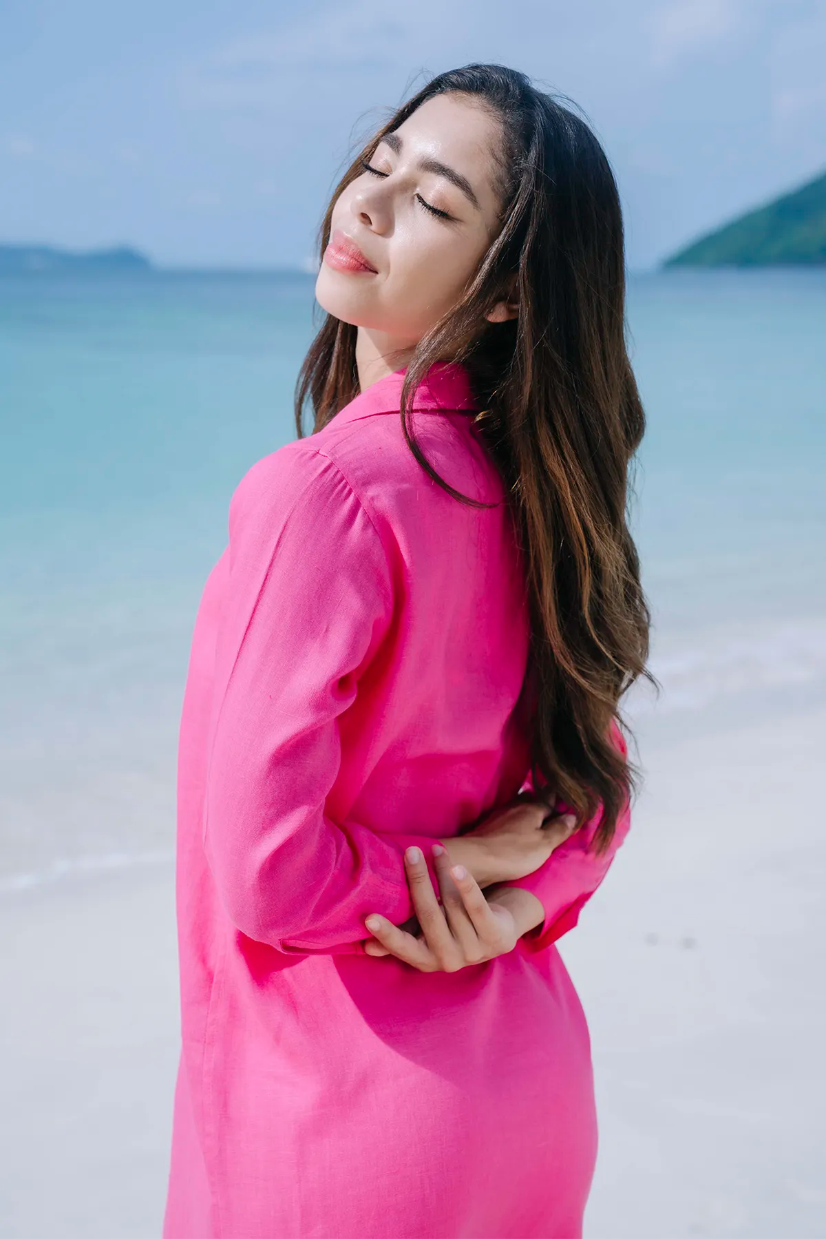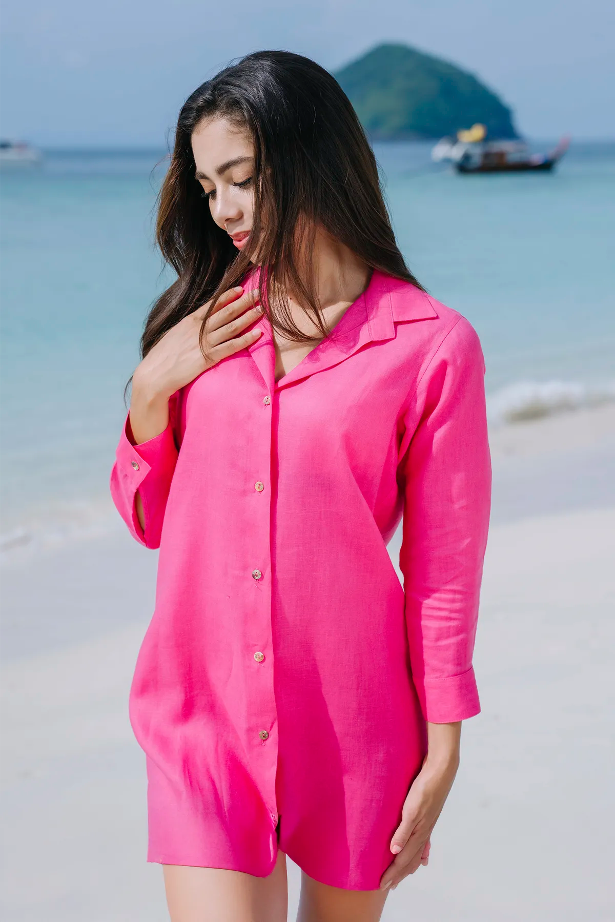 Elegant and versatile, the ABIGAIL mini dress is crafted from 100% linen with a classic shirt silhouette. Featuring a Collared and long sleeves, this design blends refined tailoring with relaxed comfort. Ideal for seaside brunches, summer holidays, or layering over swimwear for a timeless vacation look.