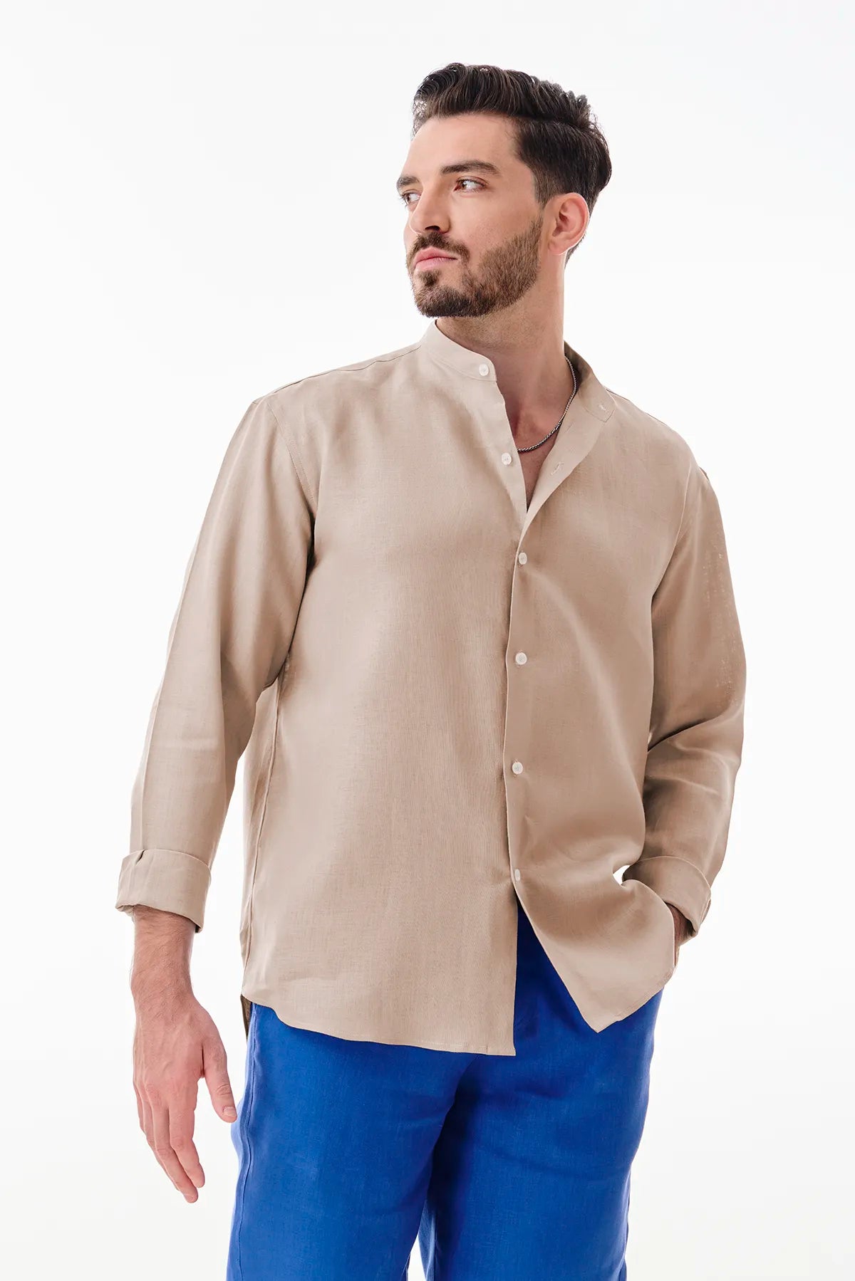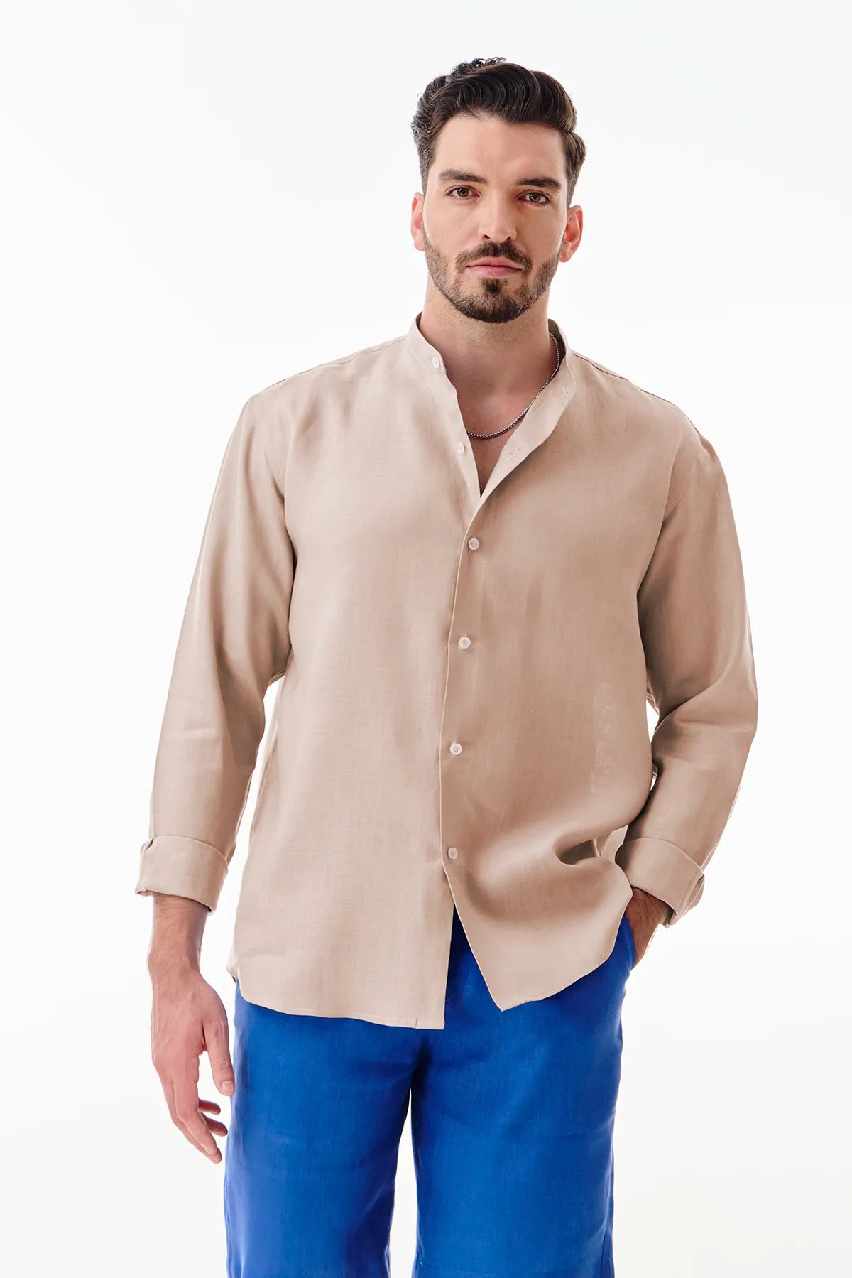 Minimal yet stylish, the BROOKE shirt is crafted from 100% linen in crisp white. Designed with a sleek mandarin collar and an easy relaxed fit, it's perfect for sun-drenched afternoons or casual resort escapes. A wardrobe essential for laid-back sophistication.