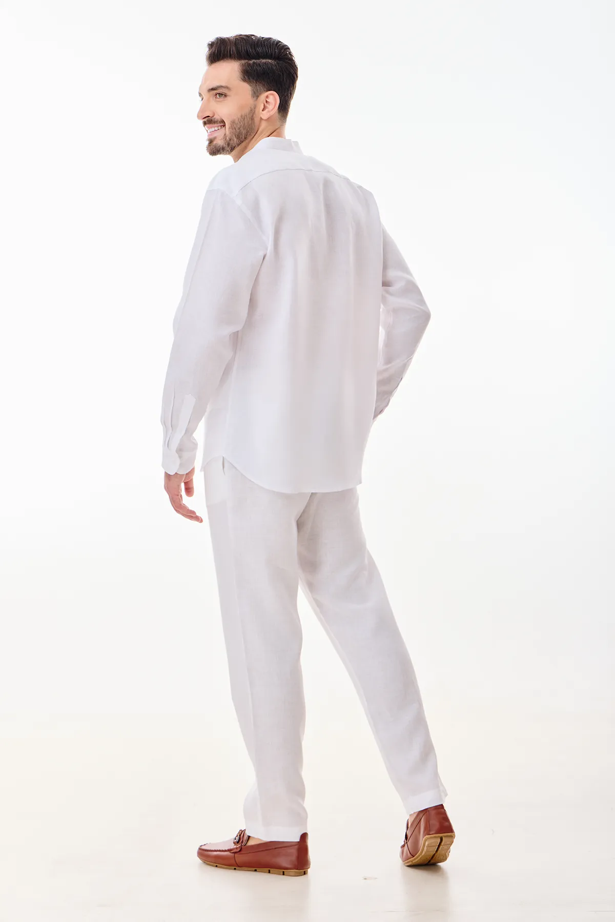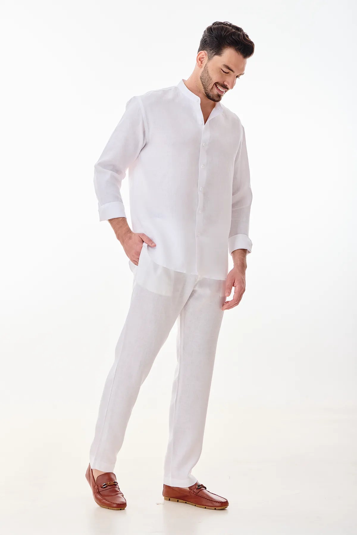 Minimal yet stylish, the BROOKE shirt is crafted from 100% linen in crisp white. Designed with a sleek mandarin collar and an easy relaxed fit, it's perfect for sun-drenched afternoons or casual resort escapes. A wardrobe essential for laid-back sophistication.